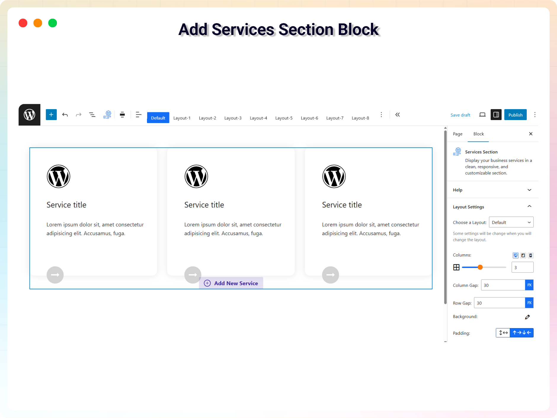Professionally showcase your services. This plugin adds a new block in the Block Editor by which you can create a professional-looking service section or OUR SERVICE section.